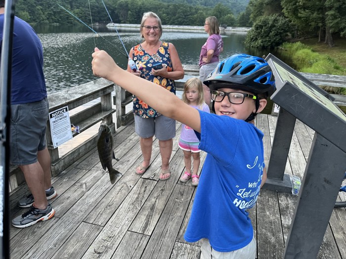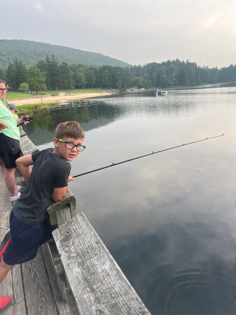 Anyway, back to the thought of life being chaotic. After mission team we had our annual camping trip to Cowan’s Gap. All 6 of us packed into our trailer, my in-laws and my parents all camped beside each other enjoying God’s creation. Man talk about a week. A day at Hershey Park, biking the battlefields at Gettysburg, fishing every chance we got. A moment that i will never forget included Eli catching a maybe 3 inch fish and singing “I am the champion,” until he realized how small it truly was. At that moment we all just stood on the deck cracking up as we made him take a picture with his “prized catch.